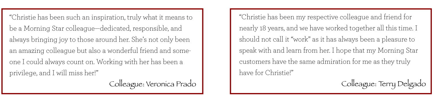 Meet Christie Ponciano: Colleague of The Morning Star Company since 1995