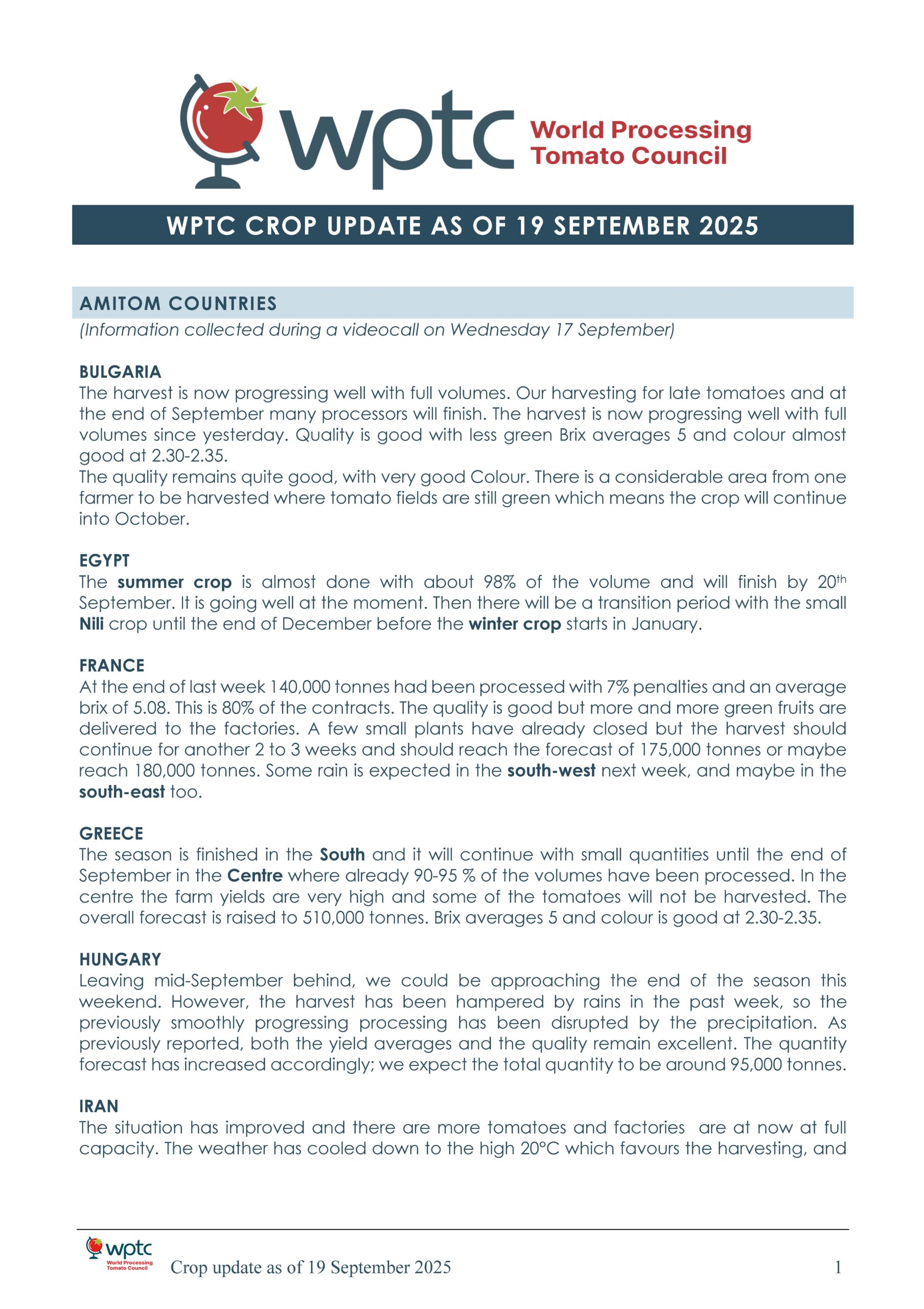 World Crop Update September 19, 2025