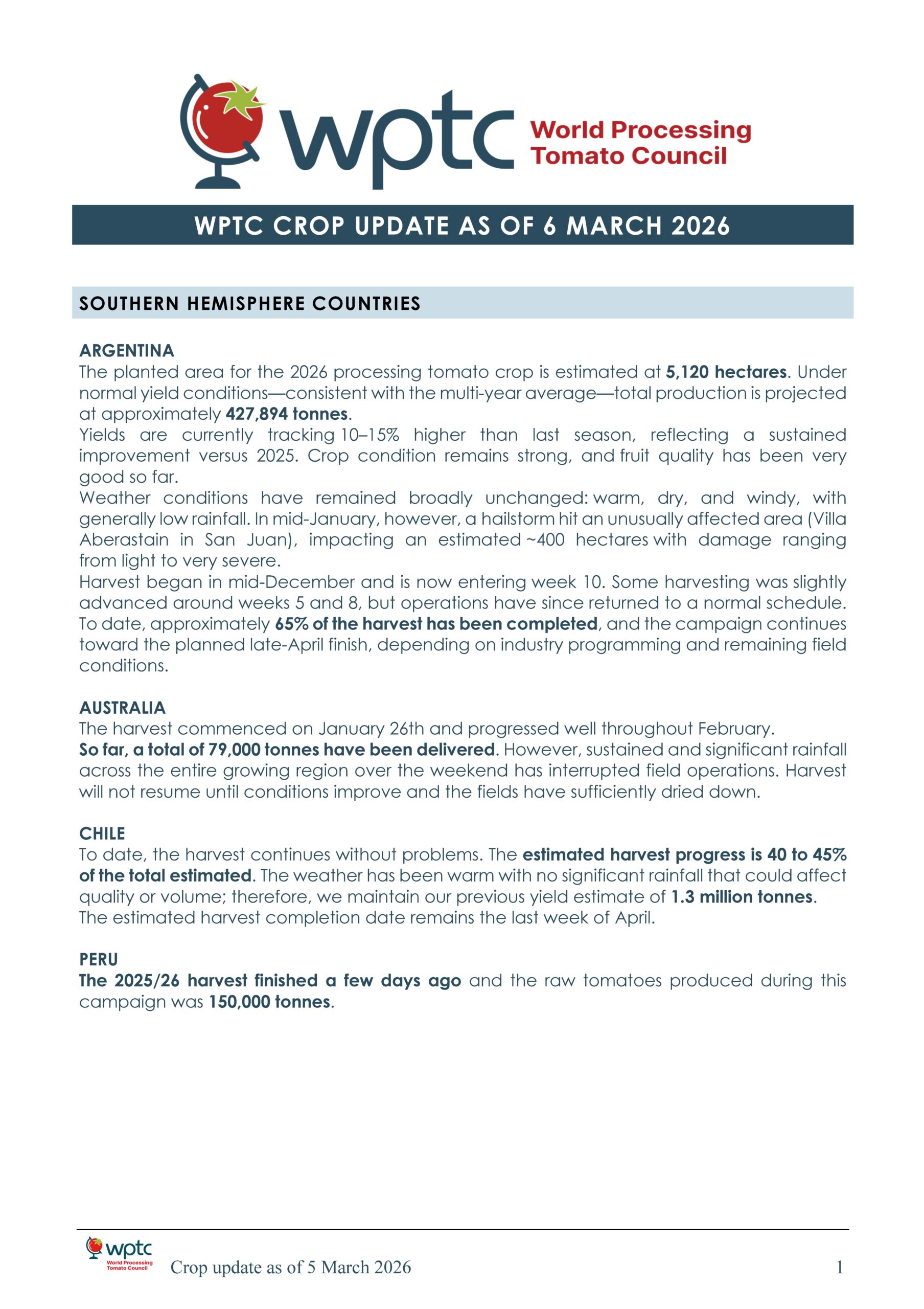 World Crop Update March 5, 2026